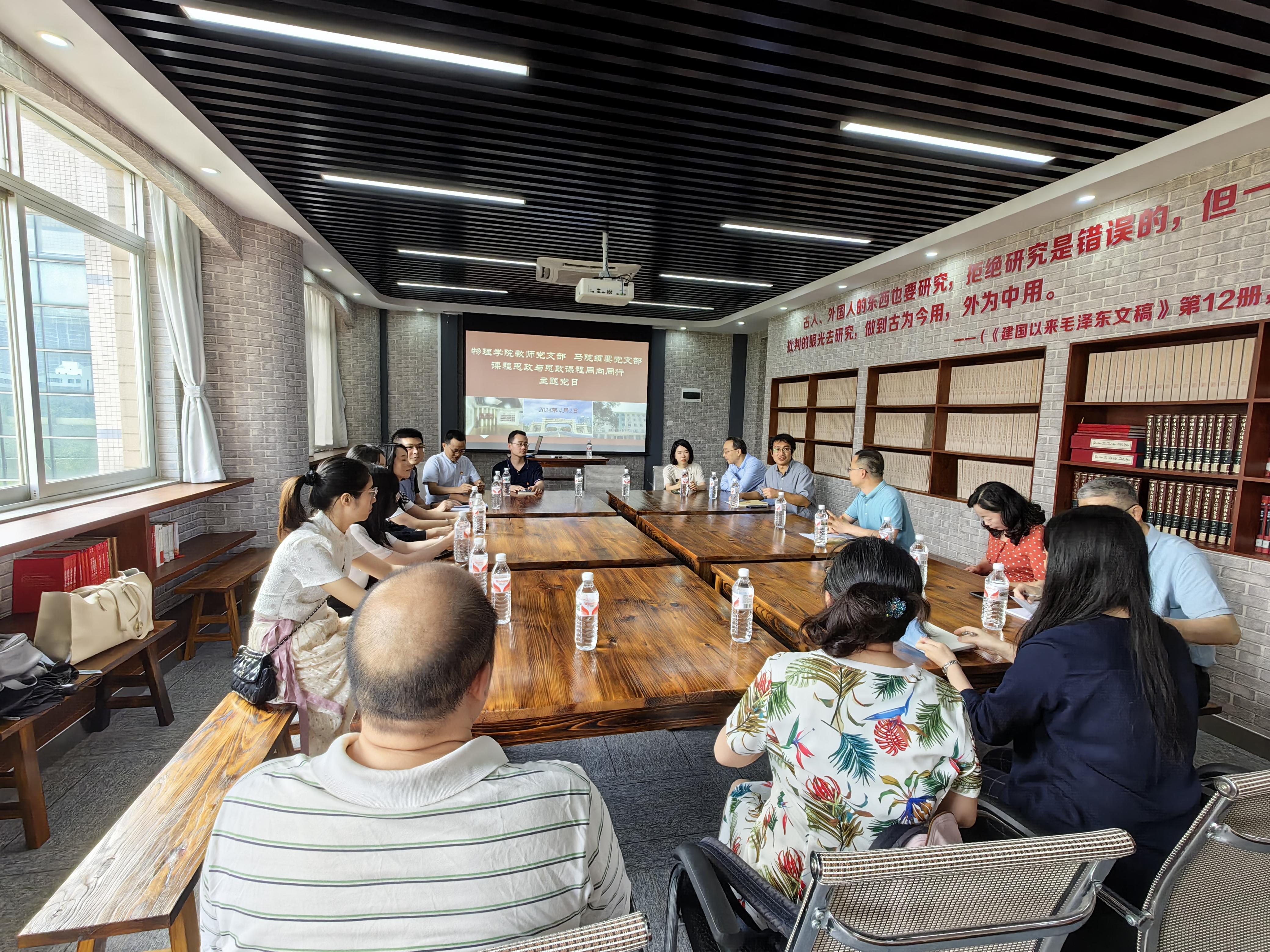 光电材料教工党支部与马院纲要党支部在马院毛泽东书屋,联合举行“课程思政与思政课程同向同行”主题党日活动。本次主题党日活动旨在加强不同学科背景教师之间的课程思政工作交流、经验分享与相互促进,就如何更好地提高课程教学质量展开探讨。