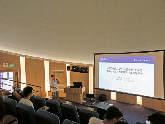 曾亮以《碳基复合材料制备及其对Mg/MgH2储氢性能催化增强作用研究》为题、姜锦涛以《弛豫铁电/反铁电薄膜电卡制冷性能的界面和制备工艺调控及机理研究》为题和张苗苗以《铅基铁电薄膜的电卡效应研究》为题进行了报告。