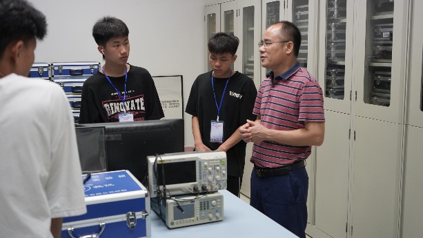 的洁净实验室、光学实验室等,面对从未见过的实验仪器,他们秉承求知之心,向实验室负责老师提出了自己的疑问,而老师们也都耐心地向他们讲解实验原理与仪器使用方法。