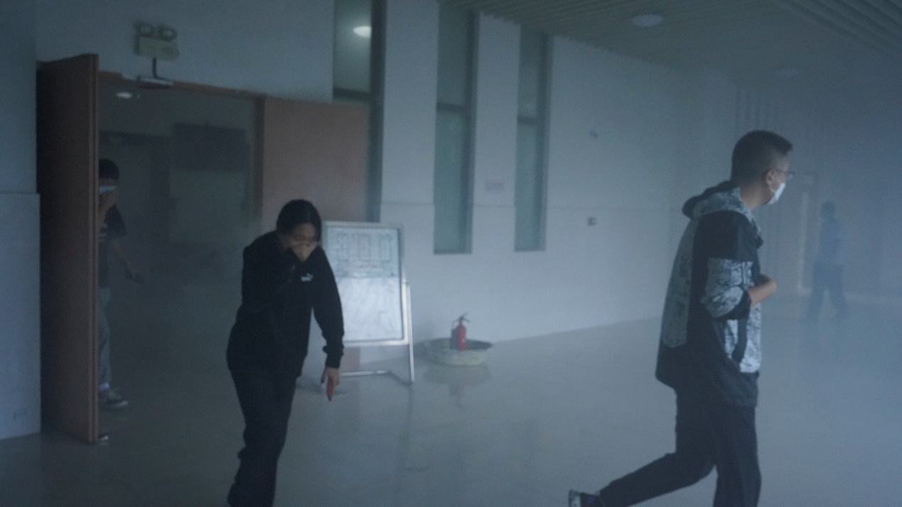 随后,还在学院大楼内进行了火灾紧急疏散演练。师生们按照演练方案井然有序地在安全时间内疏散到了安全位置。同时,楼层安全员排查了报警装置,消防设施、器材是否有效,应急照明、疏散指示标识是否运行正常。