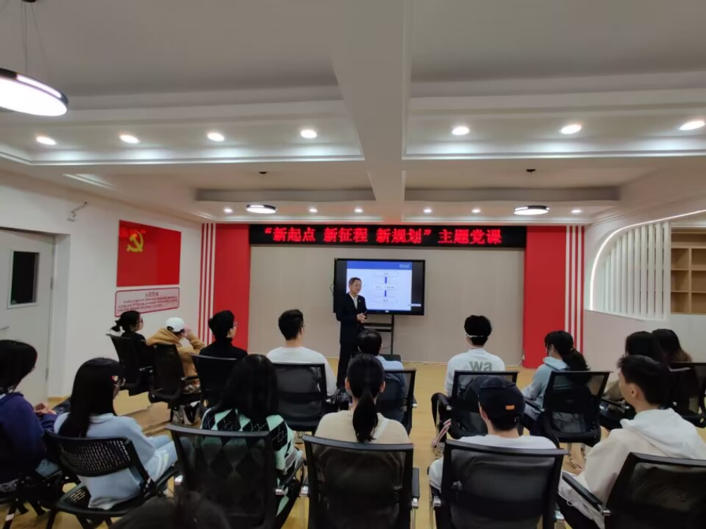 在东校园学生宿舍党员活动室为毕业生党员召开“开学第一课”主题教育班会。党委书记袁涛以“新起点、新起航、新规划”为主题,为与会学生上党课。学院团委书记梁宇彬主持班会。