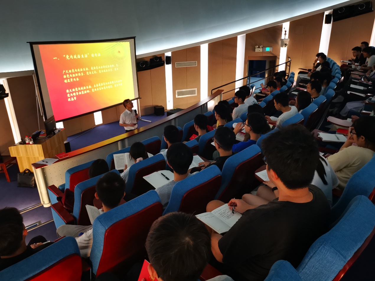 5月7日,学院党委书记袁涛为发展对象讲授了“深化全面从严治党,严肃党内政治生活——《关于新形势下党内政治生活的若干准则》学习辅导”的专题党课。袁涛书记从党内政治生活的内涵入手,阐述了《准则》出台的背景、严肃党内政治生活的重大意义和现实必要性、新形势下如何严肃党内政治生活等内容。袁涛书记结合学院实际,以《准则》第二板块为重点,讲解了坚定理想信念、坚持党的基本路线等十二个大方面的内容,他勉励同学们要不断强化思想自觉、行动自觉,努力提高思想境界、政治素养,把规范党内政治生活的各项要求落实到日常学习和工作生活中去。