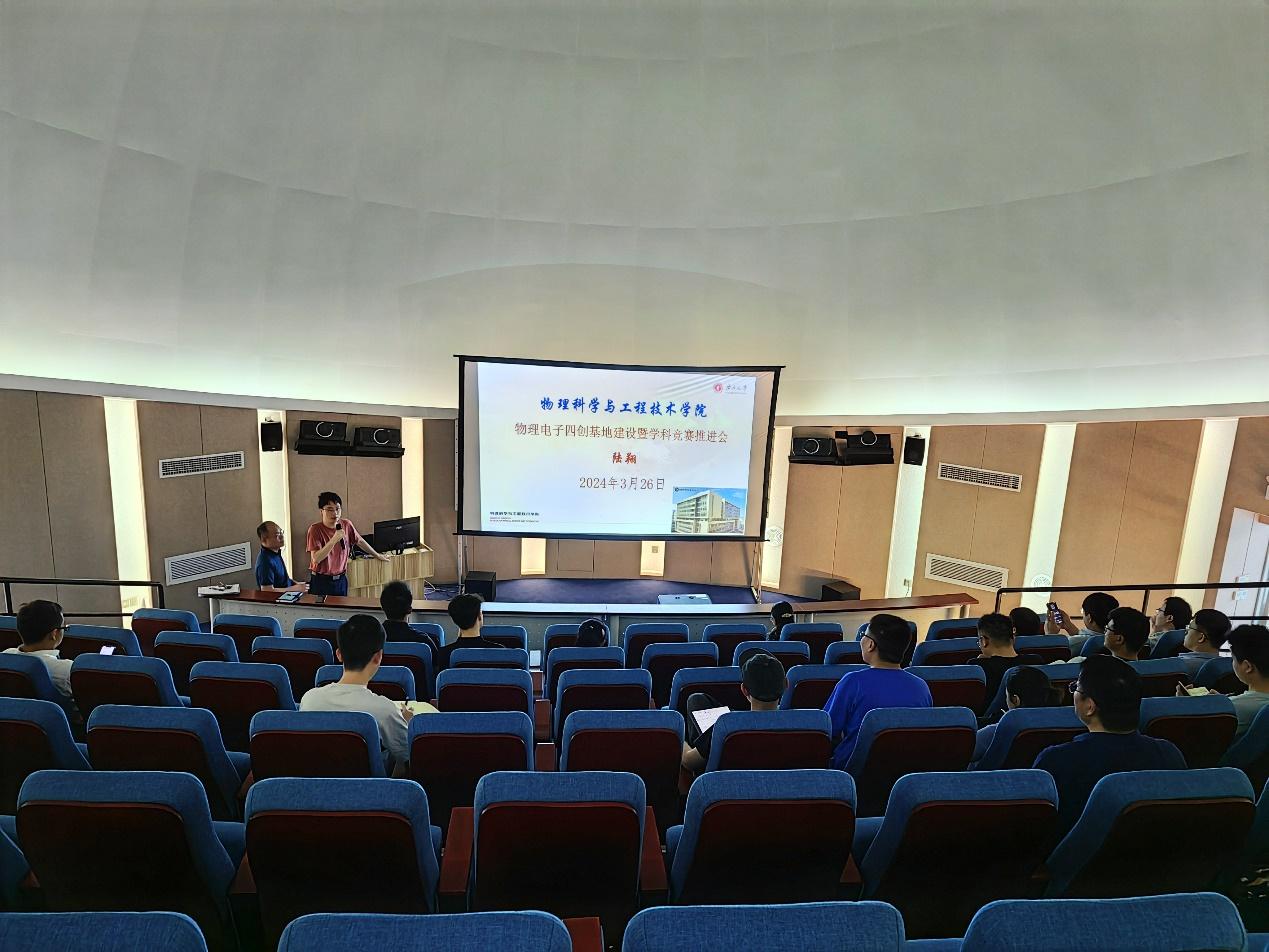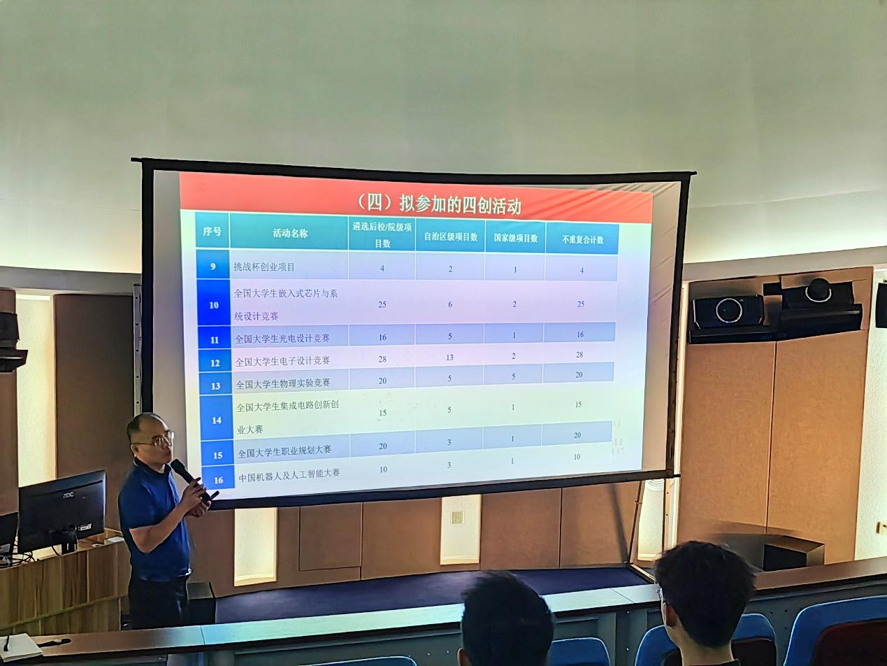 特邀请陆翔副院长对学院四创基地建设与学科竞赛进行整体汇报,林达斌副院长主持报告,学院近四十位专任教师听取了汇报。
