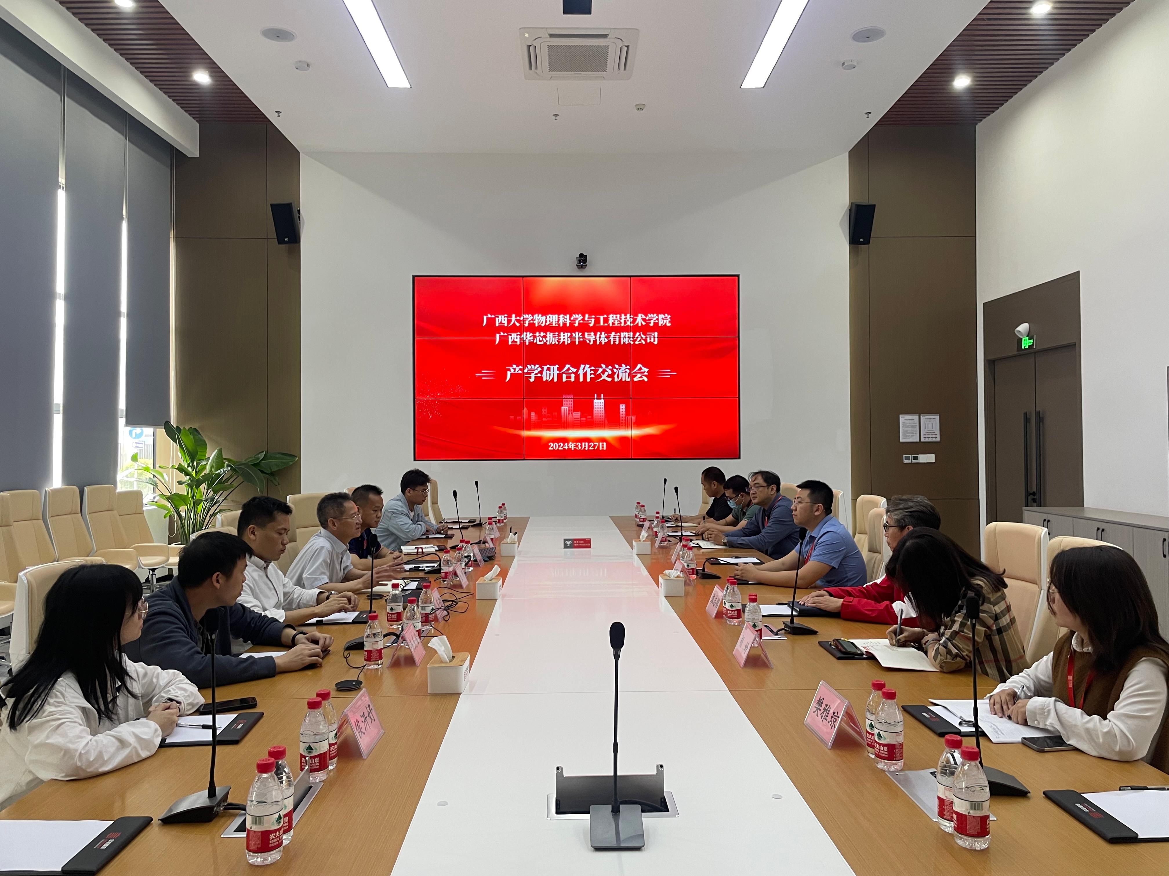 袁涛书记带队走访了广西华芯振邦半导体有限公司,与企业相关人员进行了座谈交流。此次活动旨在进一步加强校企合作,共同推动产学研深度融合,促进人才培养与科技创新的协同发展。