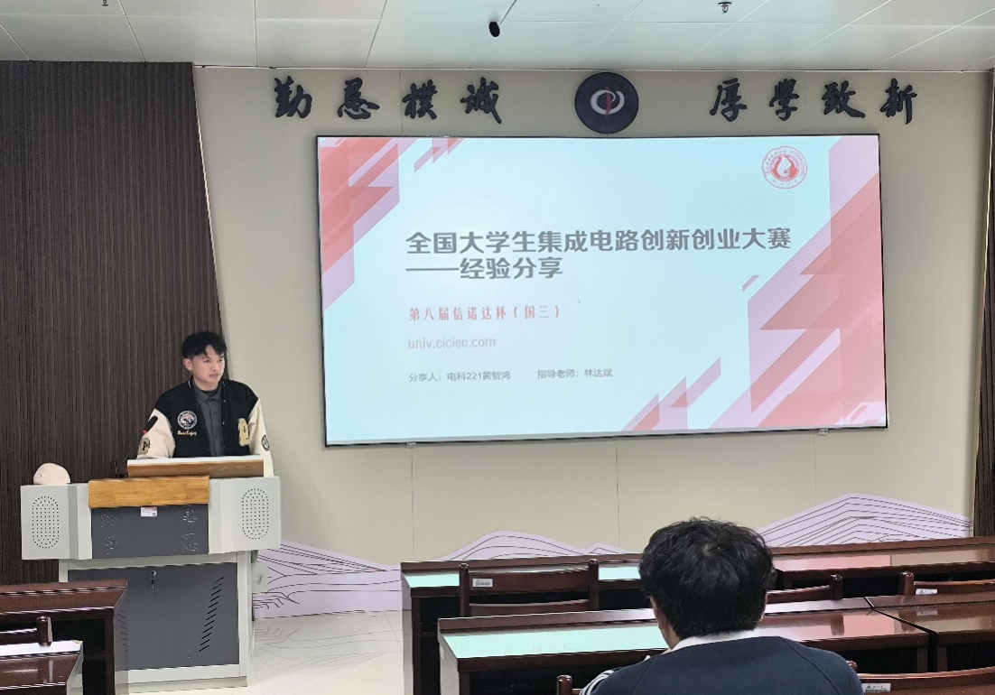 刘瑶从赛事级别、发展规模、比赛流程和晋级比例、本届赛事的新变化等方面对本次比赛进行了全面的解读和说明,并对我校较为关注的模拟与数字芯片设计方向、FPGA芯片应用方向和半导体产业链方向的18个企业杯赛赛题做了深入的分析。同时,还针对预备明年参赛的大一新生也进行了备赛规划指导,指明努力方向。最后,她鼓励同学们根据自身兴趣和能力,选择适合自己的赛题,尽早组建团队,制定详细的备赛计划。