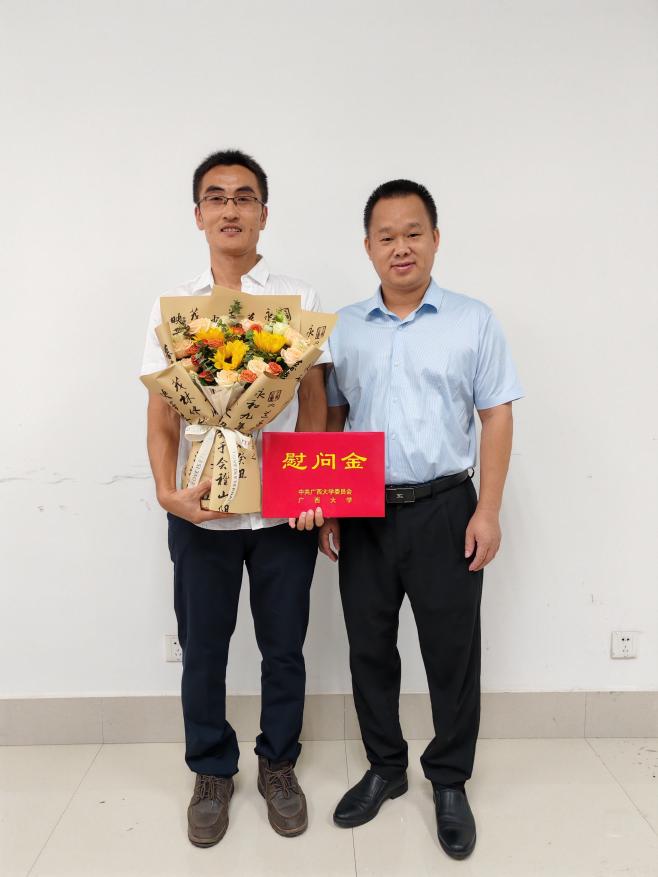 王祥高、谢斐、苗蕾、孙晓黎、韦克金、赵家龙获得学校先进个人表彰。受学校的委托,学院领导分别看望慰问了吕侯军、梁毅、陈平、封焕波等4位辛勤耕耘在教学科研一线的教师代表。