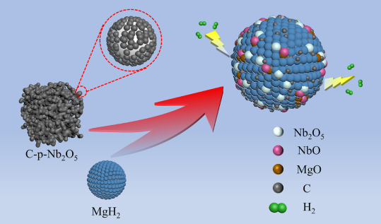 新能源材料团队开展了碳镶嵌多孔五氧化二铌复合材料的制备及其对氢化镁储氢性能影响的研究,研究成果以"Regulation of the integrated hydrogen storage properties of magnesium hydride using 3D selfassembled amorphous carbon-embedded porous niobium pentoxide"为题发表在《Journal of Materials Chemistry A》期刊上。