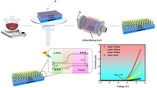 近日,孙文红教授领导的光电材料与器件研究团队在宽波段光电探测器的性能研究方面取得进展,研究成果以"Two-Dimensional MoS2 on p-Type GaN for UV-Vis Photodetectors"为题被《ACS Applied Nano Materials》杂志接收发表。