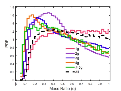 (1)此通道中多代并合的占比高达24%,其质量比峰值在0.15-0.35;