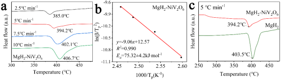 新能源材料团队开展了镍钒双金属氧化物的制备及其对氢化镁储氢性能影响的研究,研究成果以"Facile synthesis of nickel-vanadium bimetallic oxide and its catalytic effects on the hydrogen storage properties of magnesium hydride"为题发表在《International Journal of Hydrogen Energy》期刊上。