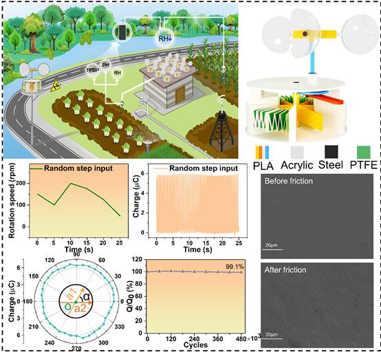 物联网传感器网络的广泛应用极大地提高了我们生活的便捷、智能化程度,而庞大的传感器数量给传统电池供能方式带来了巨大的挑战,亟需一种清洁、灵活和可持续的供电方式。摩擦纳米发电机已被证明是一种有效的低频风能采集器,但高性能的旋转式TENG的材料磨损严重极大地限制其广泛应用。基于此啪啪啦
