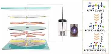 纳米能源研究中心兼职教授李舟团队开展了摩擦纳米发电机激励微等离子体用于化学战剂净化取的研究,研究成果以"Chemical warfare agents decontamination via air mircoplasma excited by a triboelectric nanogenerator"为题发表在《Nano Energy》期刊上。