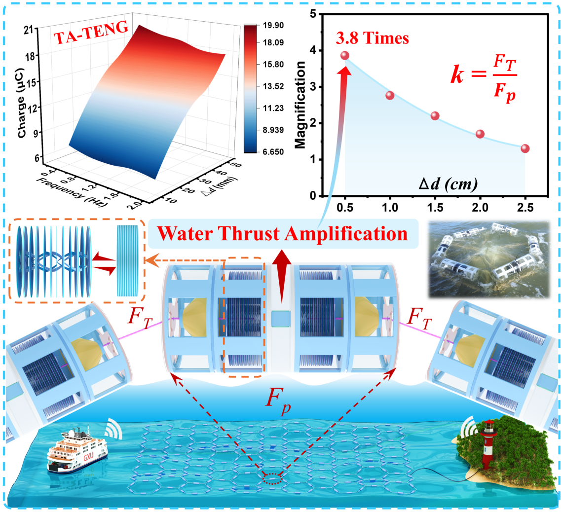 该研究成果以"A Geometric Thrust Amplifier Based Triboelectric Nanogenerator for Full-Spectrum Wave Energy Harvesting"为题,发表于国际顶级期刊《Advanced Functional Materials》(IF=19.0),啪啪啦